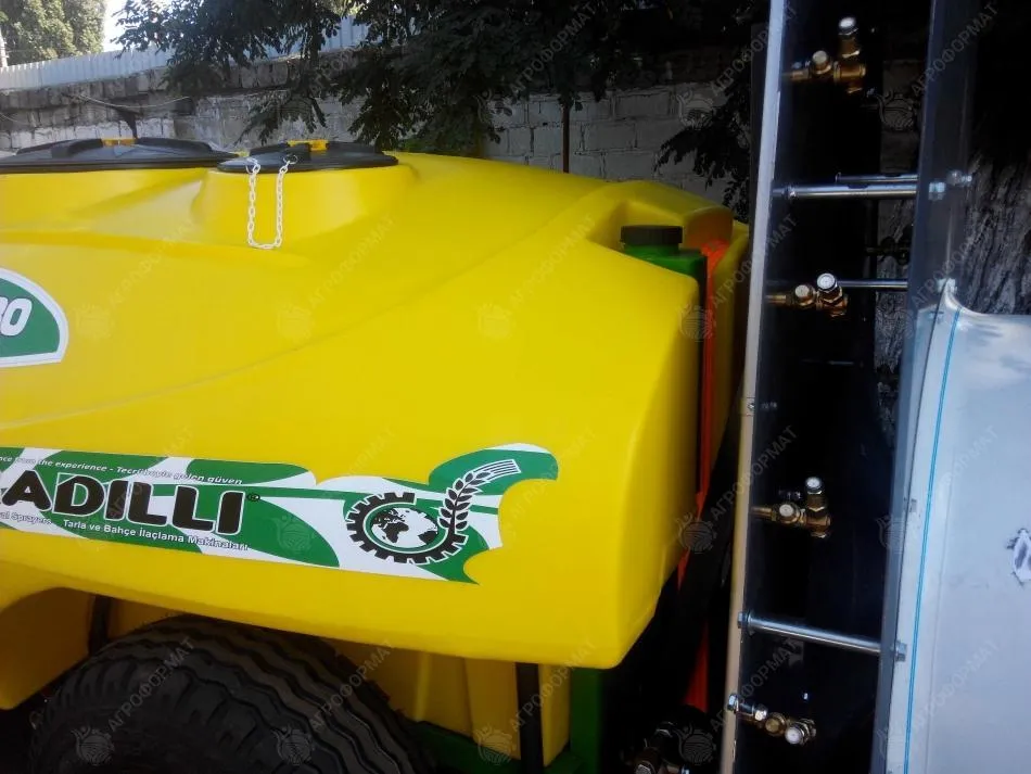 Прицепной вентиляторный опрыскиватель,бак-2000 литров, 4-х мембранный насос Comet Aps 145 л/мин,вес-540 кг, латунная форсунка, кардан в комплекте, функция самозакачки, гидравлическое смешивание удобрений.